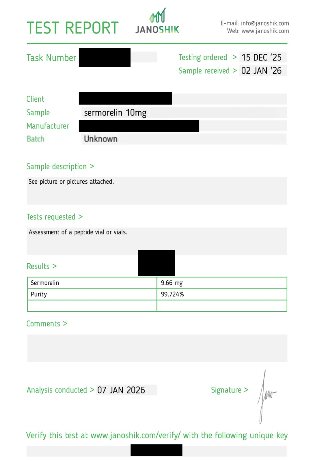 Sermorelin 10mg – a synthetic analogue of growth hormone-releasing hormone (GHRH 1-29). 99%+ purity, lyophilised, third-party COA verified.